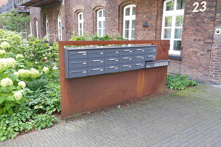 Ziel der Umgestaltung war die Schaffung eines attraktiven Empfangs für die neu etablierte Service-Wohnform. Das gelang mit Hilfe einer einladenden Auffahrt aus Klinkerriemchen an der Fliednerstraße. Im Eingangsinnenhof nehmen zwei Stahlpergolen die neue Architektursprache auf und mildern die Gesamthöhe des Raumes.